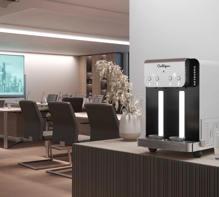 Pour les entreprises, Culligan propose une gamme de fontaines d'eau chaude, eau fraîche, tempérée ou pétillante, disponibles en versions comptoir et colonne.. Les designs modernes et contemporains sont étudiés pour que chaque modèle s’intègre parfaitement dans vos espaces de travail.