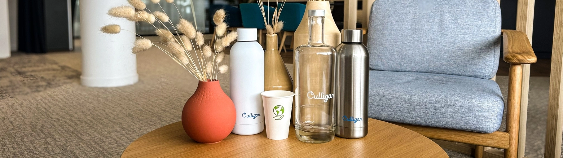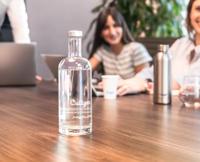 En salle de réunion, proposez des bouteilles en verre pour une hydratation de qualité. Associées à l’eau filtrée Culligan, elles offrent fraîcheur, goût et engagement écoresponsable.