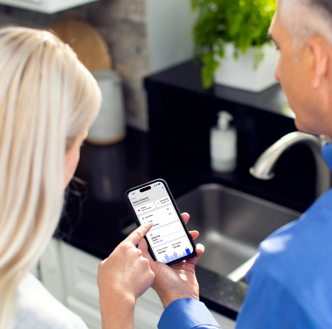 Vérifiez le niveau de sel de votre adoucisseur directement sur l’application Culligan ConnectTM.
